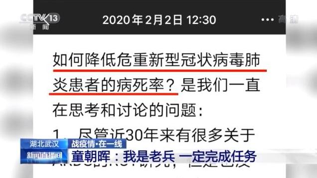 中央指導(dǎo)組專家組成員、北京朝陽醫(yī)院副院長 童朝暉:不管是從醫(yī)生的職業(yè),還是我們的專業(yè),都應(yīng)該義不容辭來(湖北)。我們這么多年,積累了很多經(jīng)驗(yàn),我應(yīng)該來把自己的這些經(jīng)驗(yàn)貢獻(xiàn)出來。
