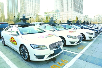 去年年底,在北京經濟技術開發(fā)區(qū),準備進行自動駕駛載人載物測試的車輛等候出發(fā)。新華社發(fā)