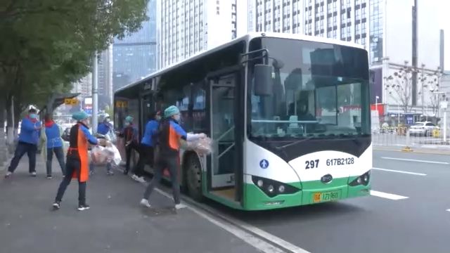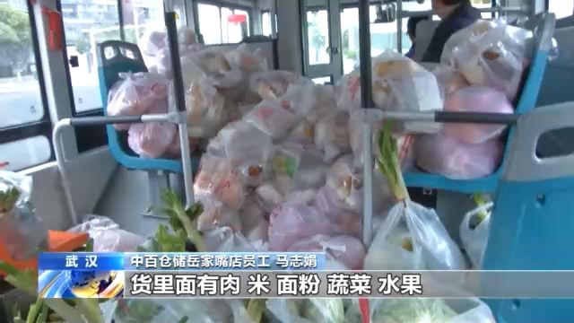 十點整,運送1500包愛心菜和500多包其它生活物資的專車來了:一輛297路公交車。為了提高運輸效率,武漢市公交集團(tuán)承接了全市社區(qū)團(tuán)購的集中配送任務(wù)。幾十名超市員工組成“人力傳送帶”把物資送上車。很快,公交車出發(fā)了。