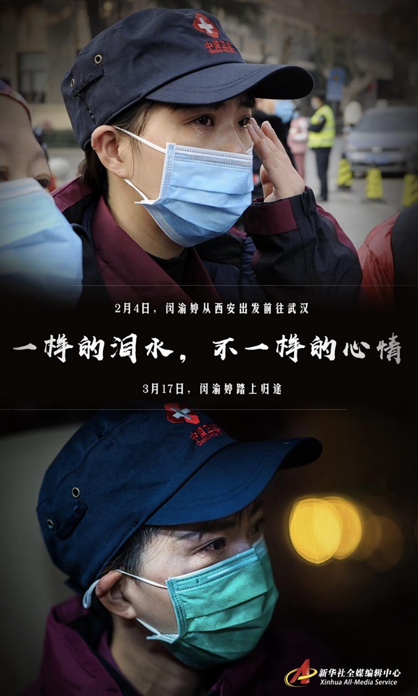 3月17日,陜西國家緊急醫(yī)學(xué)救援隊(duì)踏上返程。隊(duì)員閔渝婷忍不住落淚。