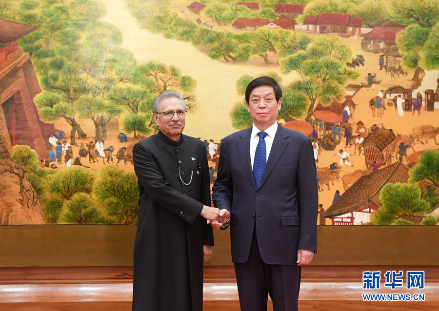3月17日,全國人大常委會委員長栗戰(zhàn)書在北京人民大會堂會見巴基斯坦總統(tǒng)阿爾維。 新華社記者 申宏 攝