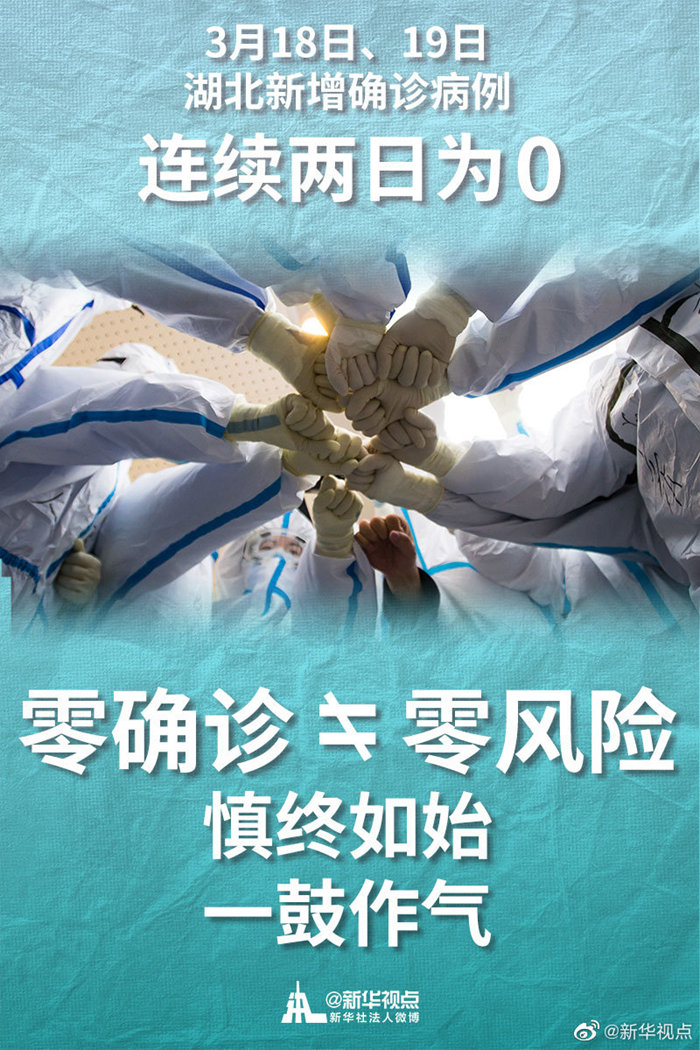 3月18日、19日,湖北連續(xù)兩日無新增確診病例,這是一個(gè)令人鼓舞的信號(hào)。 同時(shí)也要清醒看到國內(nèi)外疫情形勢(shì)的復(fù)雜性和嚴(yán)峻性。零確診不等于零風(fēng)險(xiǎn),防疫容不得半點(diǎn)松懈。面對(duì)出現(xiàn)的新問題、新挑戰(zhàn),因時(shí)因勢(shì)精準(zhǔn)施策,決不能讓向好形勢(shì)發(fā)生逆轉(zhuǎn)。