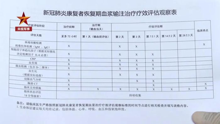為了對(duì)療效進(jìn)行評(píng)估,患者在輸注恢復(fù)期血漿后,醫(yī)護(hù)人員還會(huì)按照《療效評(píng)估觀察表》嚴(yán)密監(jiān)測(cè)相關(guān)指標(biāo),包括一般生命體征、氧合改善情況、病毒抗體等,并及時(shí)記錄。