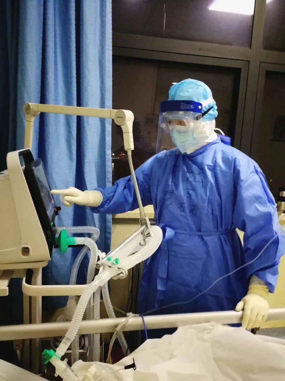 圖為北京天壇醫(yī)院援湖北醫(yī)療隊(duì)袁磊在工作中。