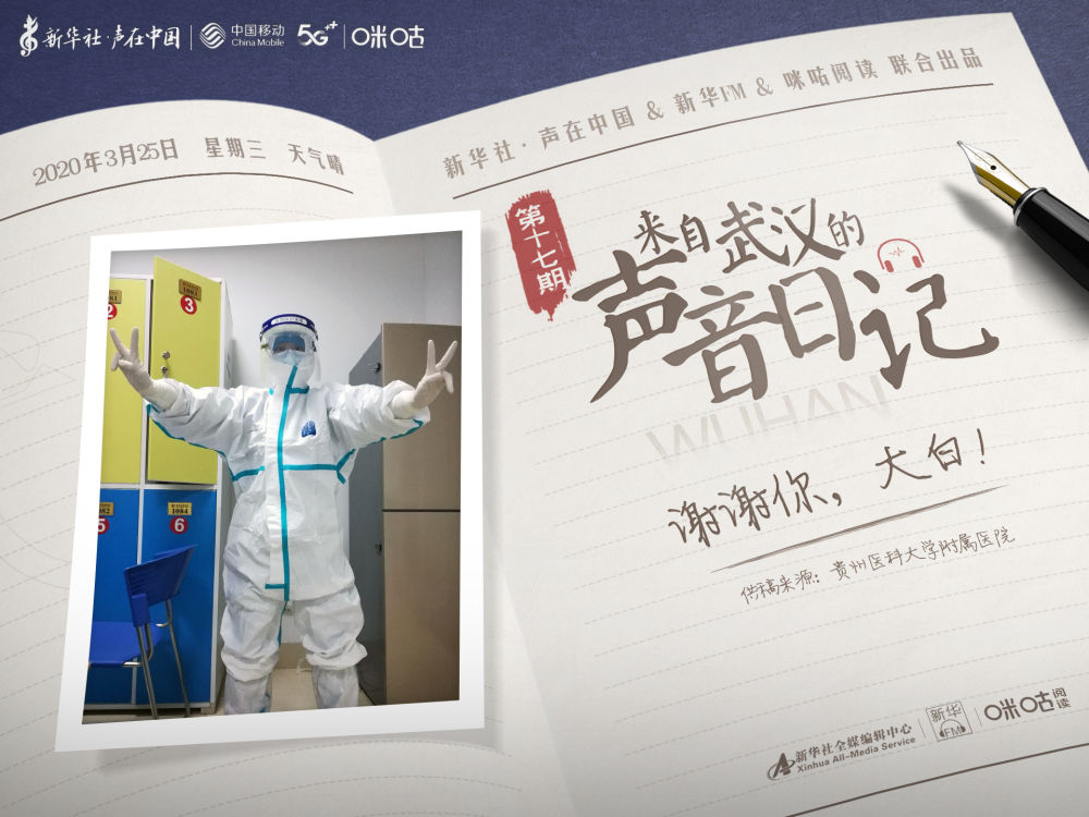 點(diǎn)擊收聽《來自武漢的聲音日記》第十七期。今天的日記來自貴州醫(yī)科大學(xué)附屬醫(yī)院援武漢醫(yī)療隊(duì)程小雪。