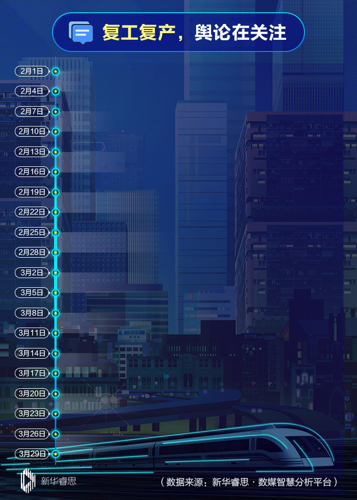 新華睿思以“復(fù)工復(fù)產(chǎn)”為關(guān)鍵詞,對疫情發(fā)生以來習(xí)近平總書記相關(guān)重要論述和網(wǎng)民關(guān)注度、留言討論等進(jìn)行了持續(xù)追蹤統(tǒng)計(jì)。大量數(shù)據(jù)顯示,習(xí)近平反復(fù)強(qiáng)調(diào)的復(fù)工復(fù)產(chǎn),也是網(wǎng)民的熱切關(guān)注所在。在疫情防控常態(tài)化條件下加快恢復(fù)正常生產(chǎn)生活秩序,把疫情造成的損失降到最低,這是習(xí)近平傾心關(guān)注的重點(diǎn),也是廣大網(wǎng)民共同的心聲。
