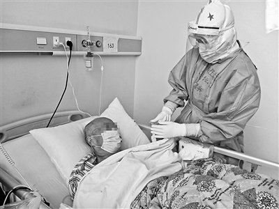 3月30日下午,已經(jīng)沒有檀學(xué)兵的班次了,但她還是穿上防護(hù)服進(jìn)了病房,敲門進(jìn)去,老胡轉(zhuǎn)過來看見是她,淚花一下出來了。