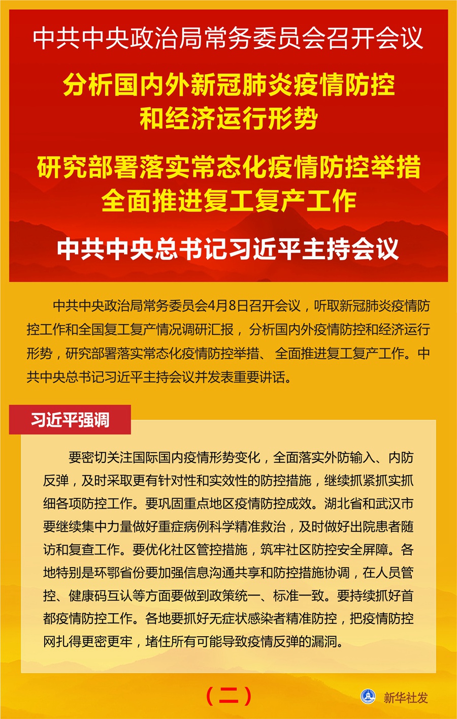 圖表:中共中央政治局常務(wù)委員會(huì)召開(kāi)會(huì)議 分析國(guó)內(nèi)外新冠肺炎疫情防控和經(jīng)濟(jì)運(yùn)行形勢(shì) 研究部署落實(shí)常態(tài)化疫情防控舉措全面推進(jìn)復(fù)工復(fù)產(chǎn)工作 中共中央總書(shū)記習(xí)近平主持會(huì)議(二) 新華社發(fā)