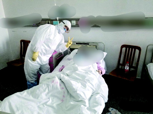 2月20日,隔壁一位黃姓病友過生日,他拍攝的醫(yī)護(hù)人員為新冠患者慶生的照片,被人民日報微博選為“方艙醫(yī)院的動人瞬間”主題新聞圖片,讓他在方艙里著實(shí)“火”了一把。