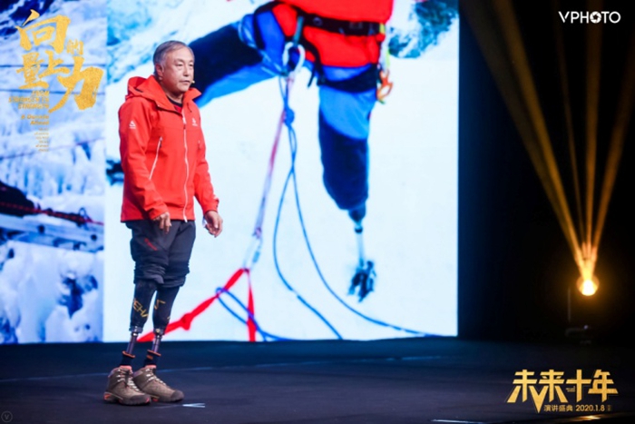 登山英雄夏伯渝講述了他與珠穆朗瑪峰的不解之緣。1975年對于夏伯渝來說,那是一個“巨變之年”:那一年,他失去了父親,失去了雙腿,珠峰成了遙不可及的夢想。但生活從未將他打倒,43年后,夏伯渝以69歲的高齡,終于站在了8800多米的珠穆朗瑪峰峰頂,成就了自己的“榮耀時刻”。在“向上的力量”的舞臺上,他說道:“珠峰,我要感謝它。就是因為再登珠峰這個夢想,一直支持著我、鼓舞著我,一直走到現在,才使我的生活更加充實,更加有意義,值得去回憶。”夏伯渝說,他接下來的夢想是“7+2”——七大洲最高峰和南北極。