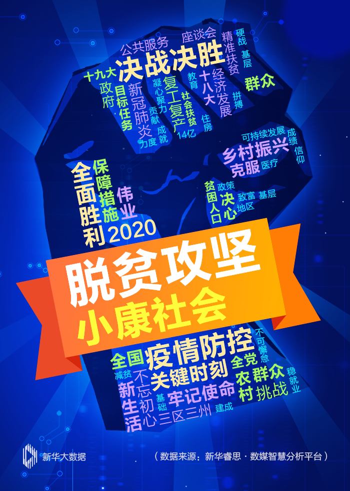 總書記的牽掛,也是網(wǎng)民的關注。新華睿思持續(xù)跟蹤微博、抖音、今日頭條等網(wǎng)上熱搜榜高熱話題,以及重大新聞事件,梳理出網(wǎng)民關注的熱詞集錦。根據(jù)關注度排行可以看出,“脫貧攻堅”“小康社會”兩大關鍵詞位居前列,“決戰(zhàn)決勝”“全面勝利”“疫情防控”等也成為熱搜詞匯。
