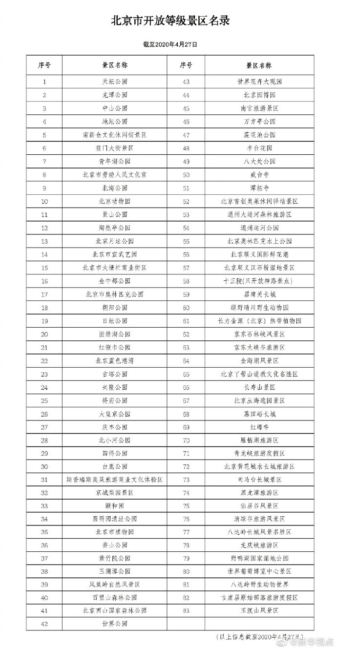 據(jù)了解,截至27日,北京市等級旅游景區(qū)有序恢復開放83家,開放率為35%。