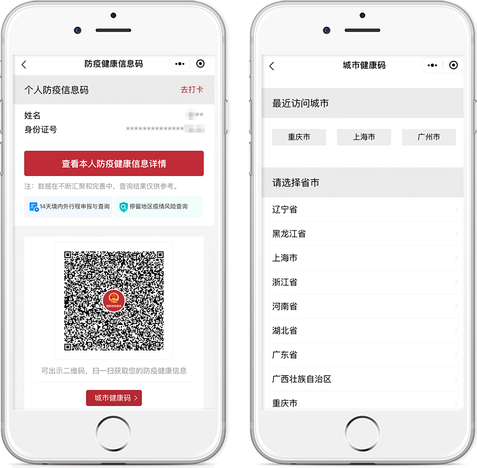 “防疫健康信息碼”為你的跨省出行保駕護航,關聯(lián)全國31個?。▍^(qū)、市)及新疆生產建設兵團防疫“健康碼”信息,實現(xiàn)了信息共享和互通互認,全國絕大部分地區(qū)可“一碼通行”。