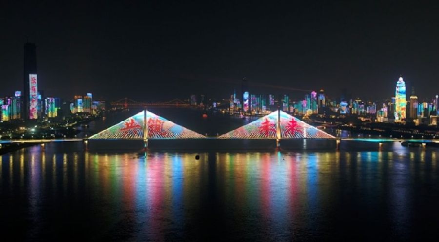 “感謝逆行!”“感謝共克時艱!”“感謝拼命!”“中國擔當!”……感恩與謝意,匯聚成璀璨的燈光,閃耀在武漢市內(nèi)道路建筑和江灘兩岸“巨屏”上。