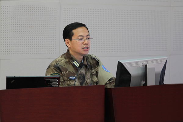 張國春在作關(guān)于兵棋系統(tǒng)改進的報告(資料照片)。 新華社發(fā)(楊俊光 攝)