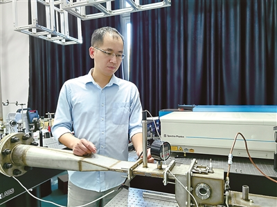 圖為尤延鋮教授在調(diào)試用于發(fā)動(dòng)機(jī)燃燒室光學(xué)測量的激光測試儀器。(廈門大學(xué)供圖)