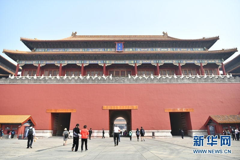 5月1日,游客從午門(mén)進(jìn)入故宮。 當(dāng)日,故宮博物院有序恢復(fù)開(kāi)放,實(shí)行預(yù)約、錯(cuò)峰、限流等措施,每日限5000人參觀。觀眾可通過(guò)故宮博物院網(wǎng)絡(luò)售票網(wǎng)站,使用第二代身份證或護(hù)照信息預(yù)約購(gòu)票。 新華社記者 李鑫 攝