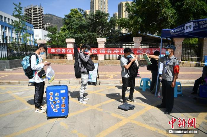 資料圖:5月11日,云南一高校返校學(xué)生間隔排隊(duì)、掃碼進(jìn)校園。記者 劉冉陽 攝