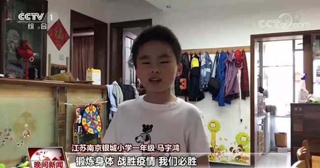 江蘇南京銀城小學(xué)一年級 馬宇鴻:在家我學(xué)到了一些新技能。前滾翻、雙手拍籃球、玩橢圓機(jī)……鍛煉身體,戰(zhàn)勝疫情,我們必勝!