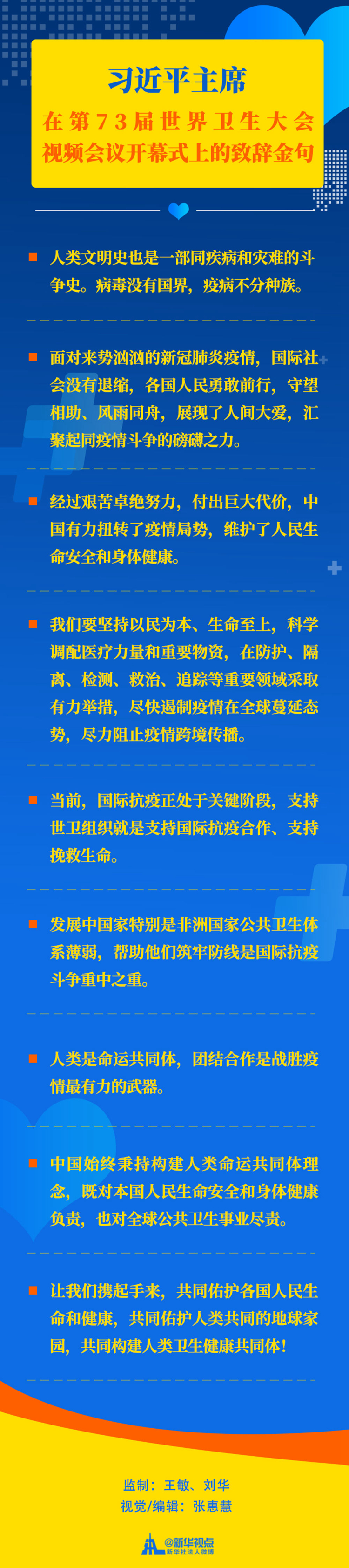 習(xí)近平主席在第73屆世界衛(wèi)生大會視頻會議開幕式上的致辭金句