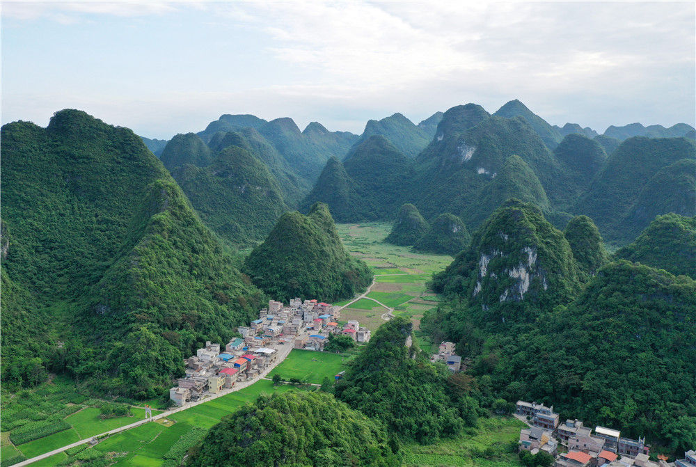 這是廣西環(huán)江毛南族自治縣下南鄉(xiāng)鄉(xiāng)村風(fēng)貌(5月22日攝,無人機(jī)照片)。新華社記者 陸波岸 攝