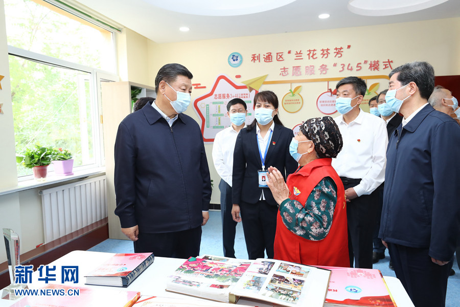 6月8日至10日,中共中央總書記、國家主席、中央軍委主席習(xí)近平在寧夏考察。這是6月8日下午,習(xí)近平在吳忠市利通區(qū)金花園社區(qū)考察民族團(tuán)結(jié)社區(qū)創(chuàng)建工作情況。 新華社記者 謝環(huán)馳 攝
