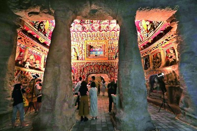 浙大師生在參觀云岡石窟第12窟復(fù)制窟。盧紹慶攝/光明圖片
