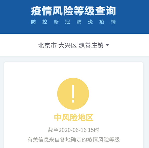 根據(jù)國(guó)務(wù)院客戶(hù)端小程序,北京又有5個(gè)地區(qū)升級(jí)為中風(fēng)險(xiǎn)。分別為: