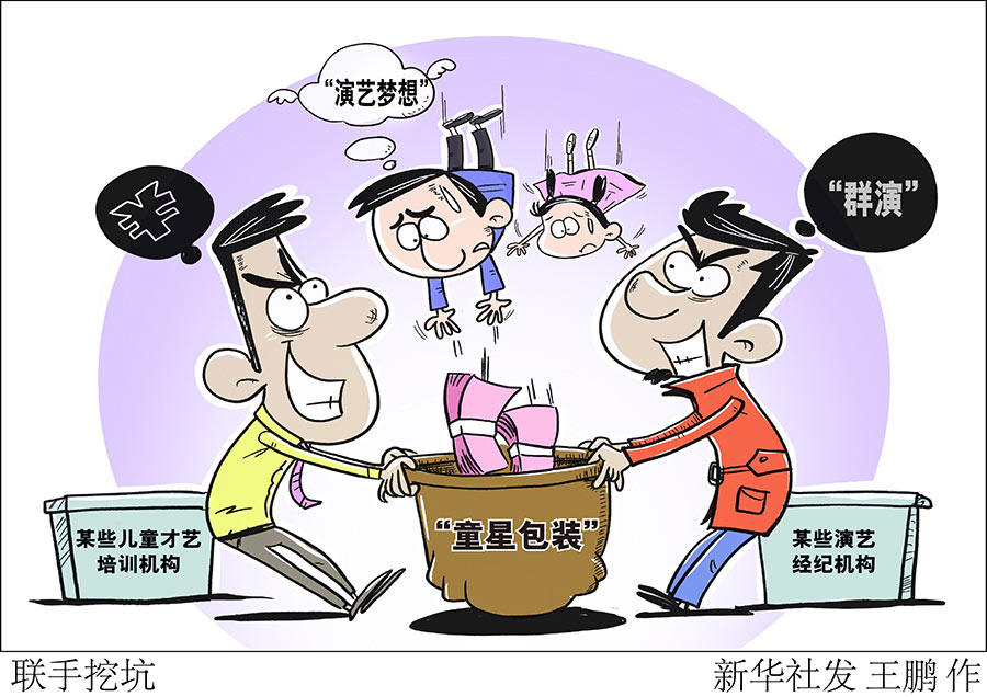 在兒童才藝培訓(xùn)市場(chǎng)缺乏有效監(jiān)管的現(xiàn)狀下,一些培訓(xùn)機(jī)構(gòu)、演藝經(jīng)紀(jì)公司以才藝培訓(xùn)作幌子,動(dòng)輒向家長(zhǎng)收取上萬元培訓(xùn)費(fèi)用,其實(shí)是兜售表演機(jī)會(huì);而演藝經(jīng)紀(jì)機(jī)構(gòu)一旦高價(jià)“招募”到一名兒童演員,就會(huì)給培訓(xùn)機(jī)構(gòu)分成,培訓(xùn)機(jī)構(gòu)借此也能顯示與電視臺(tái)、節(jié)目制作方有合作,對(duì)招生構(gòu)成“金字招牌”,容易吸引家長(zhǎng)報(bào)班,二者合作心照不宣。