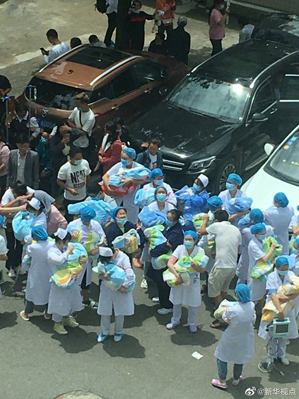 7月2日,貴州省畢節(jié)市赫章縣發(fā)生4.5級地震,震源深度13千米。地震襲來,當(dāng)不少人都往外疏散時,正在開展業(yè)務(wù)學(xué)習(xí)的赫章縣人民醫(yī)院新生兒科醫(yī)生們第一時間“逆行”病房,緊隨而來的還有實習(xí)生、急診科護(hù)士等。他們每人負(fù)責(zé)一個寶寶,抱著往外疏散,確保當(dāng)時在病房的26個新生寶寶平安撤離到安全地帶。致敬白衣天使?。ㄓ浾咄跣旅鳌Ⅰ橈w 圖片來源赫章縣人民醫(yī)院)