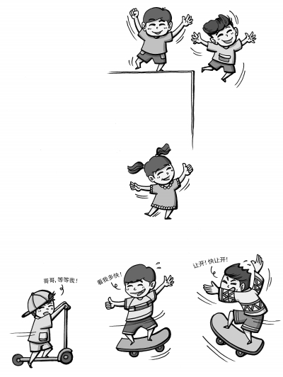 除了平衡車(chē),原本被視為“極限運(yùn)動(dòng)”的滑板,最近也成了孩子們的新寵,從學(xué)齡前兒童到初中學(xué)生,都有孩子在玩滑板。