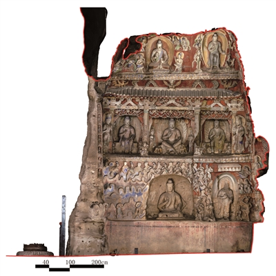 云岡12窟前室西壁正射影像圖,原真的形色信息記錄后的數(shù)字化測圖