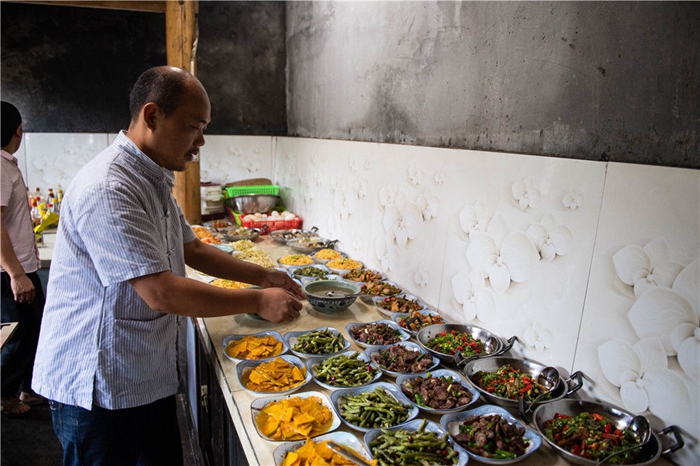 在湘西十八洞村,楊正邦在自家開(kāi)的飯店廚房里幫忙(6月30日攝)。新華社記者 陳思汗 攝