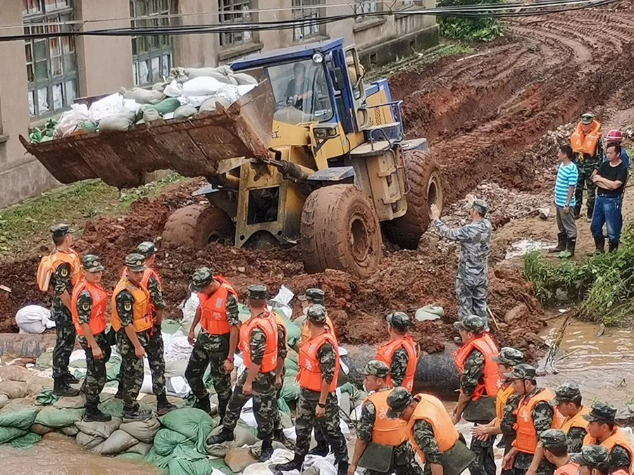 搶險從下午1點半持續(xù)到深夜,當地又突降暴雨,大家渾身泥水不分,卻未曾停下腳步。