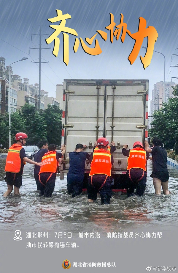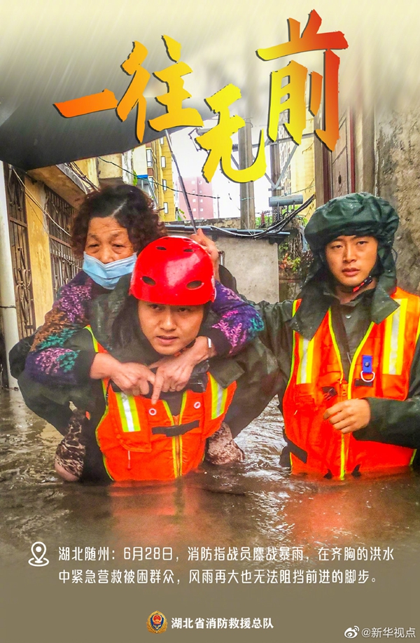 湖北近期遭遇持續(xù)強(qiáng)降雨天氣,部分地區(qū)出現(xiàn)洪澇災(zāi)害。洪水襲來,在救援現(xiàn)場(chǎng)奔波忙碌的消防救援人員,始終沖在一線,“橙”風(fēng)破浪,守護(hù)著人民群眾的生命和財(cái)產(chǎn)安全。這抹“橙”,成為災(zāi)區(qū)人民心中最溫暖的底色。向“逆行者”致敬?。ㄓ浾吡航◤?qiáng))