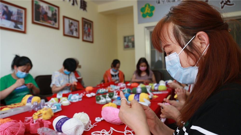 在四川省閬中市王家嘴社區(qū)殘疾人編織基地,工人在制作手工兒童鞋(6月14日攝)。新華社記者 楊進 攝