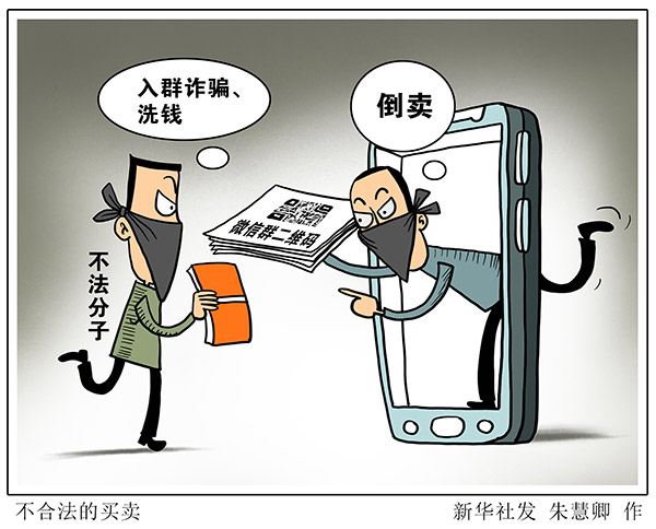 “新華視點”記者調(diào)查發(fā)現(xiàn),微信群的二維碼在網(wǎng)絡(luò)上被倒賣,一些不法分子借此實施詐騙或洗錢。