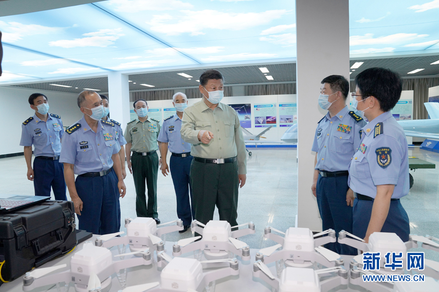 八一建軍節(jié)到來(lái)之際,中共中央總書記、國(guó)家主席、中央軍委主席習(xí)近平7月23日到空軍航空大學(xué)視察,代表黨中央和中央軍委,向?qū)W校師生員工致以誠(chéng)摯問(wèn)候,向全體人民解放軍指戰(zhàn)員、武警部隊(duì)官兵、民兵預(yù)備役人員致以節(jié)日祝賀。這是習(xí)近平察看無(wú)人機(jī)操控教學(xué)設(shè)施,了解無(wú)人機(jī)操控員培養(yǎng)情況。 新華社記者 李剛 攝