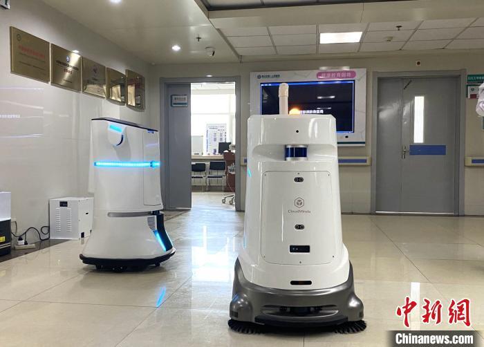 資料圖:銀川市第一人民醫(yī)院內(nèi),智能機器人正在工作。 楊迪 攝