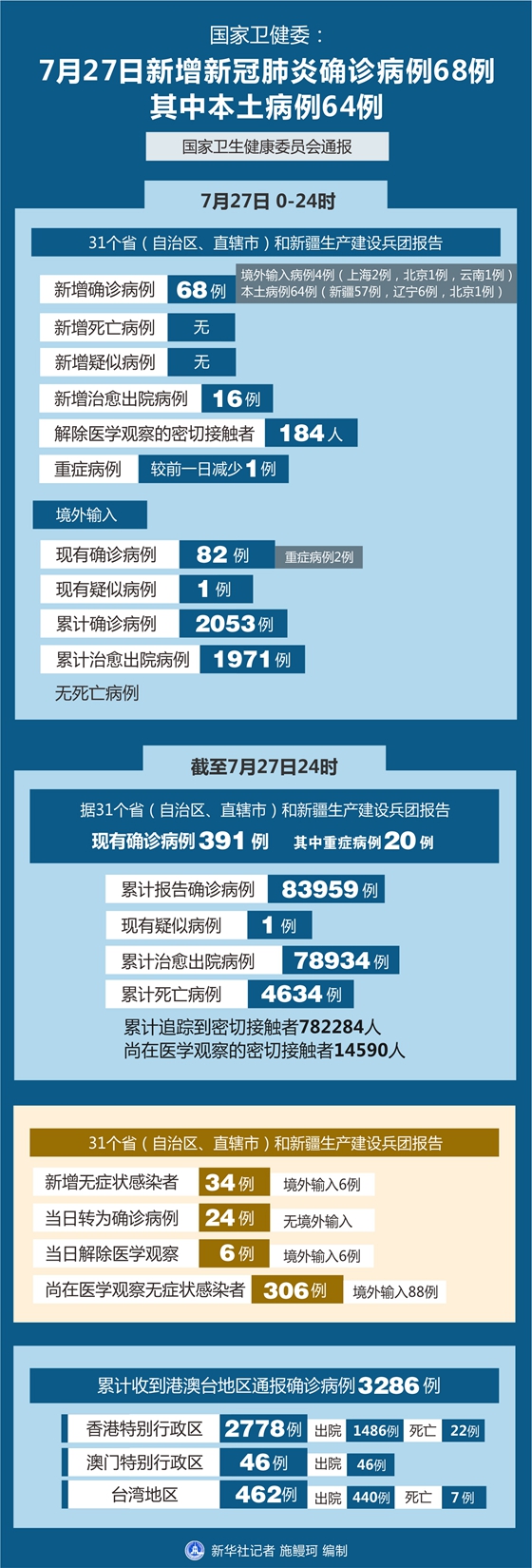 截至7月27日24時(shí)新疆(含兵團(tuán))新型冠狀病毒肺炎疫情最新情況