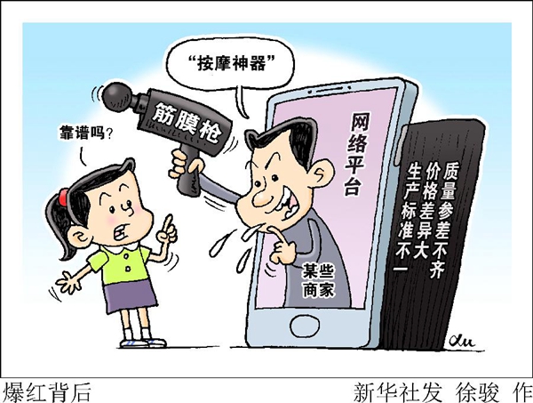 “10分鐘按摩輕松擺脫疲勞”“瘦肚子瘦腿局部減脂神器”“腰酸背痛,哪兒難受打哪兒”……近年來(lái),筋膜槍成為一款酷炫的按摩產(chǎn)品,類似產(chǎn)品宣傳網(wǎng)上隨處可見(jiàn)。從百萬(wàn)粉絲的微博大V博主到流量飛起的直播達(dá)人,不少人在賣(mài)力推廣、宣傳帶貨。