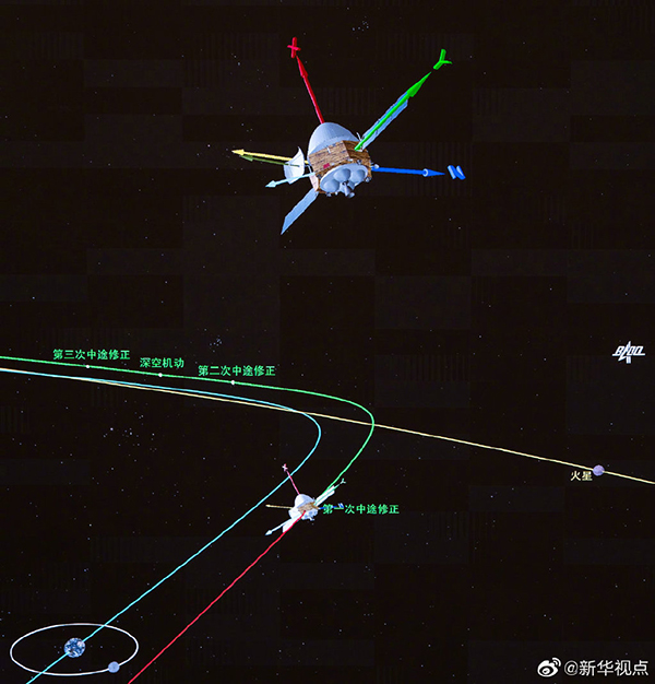 截至第一次軌道修正前,“天問一號”已飛行9天17個小時,距離地球超過300萬公里,探測器各系統(tǒng)狀態(tài)良好。此次3000牛發(fā)動機點火,在完成軌道修正的同時,驗證了發(fā)動機在軌的實際性能。