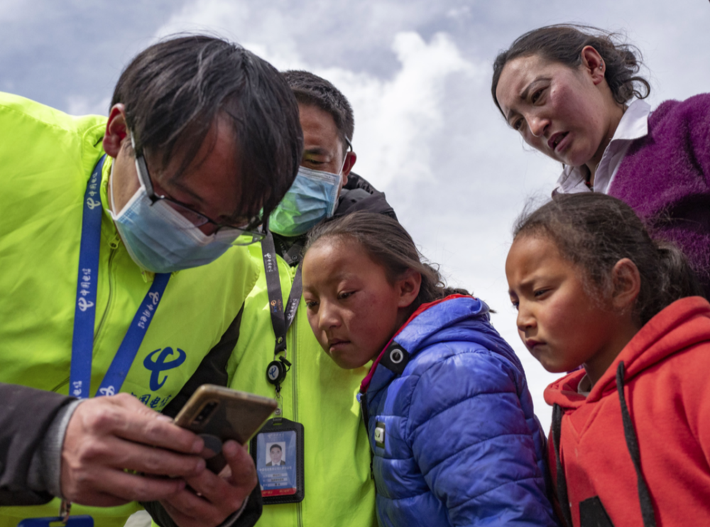 3月6日,中國電信集團拉薩分公司當(dāng)雄電信局的技術(shù)人員在烏瑪塘鄉(xiāng)巴嘎村幫助村民調(diào)試無線網(wǎng)絡(luò),方便偏遠牧區(qū)學(xué)生上好網(wǎng)課(晉美多吉/攝)