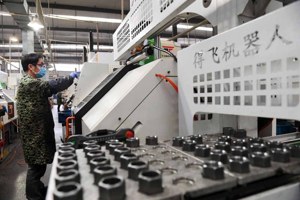 3月5日,在江西省宜春市一家企業(yè)車間內(nèi),工人在半自動(dòng)化生產(chǎn)線上工作。各地工業(yè)企業(yè)在做好疫情防控的同時(shí)積極復(fù)工復(fù)產(chǎn)。新華社發(fā)(周亮 攝)