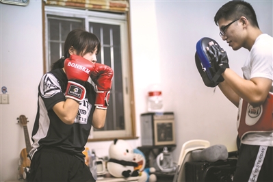 90后夫妻在練拳擊。