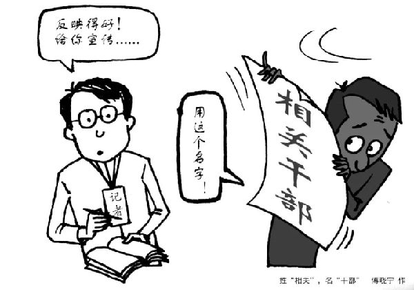 半月談?dòng)浾咴跂|部某省份采訪,隨機(jī)找到一名鄉(xiāng)鎮(zhèn)干部,了解農(nóng)村文化設(shè)施建設(shè)情況。記下這位干部的姓名職務(wù),半月談?dòng)浾邔懜鍟r(shí),地方卻來商量:先別提這位鄉(xiāng)鎮(zhèn)干部的名字,要在稿件里突出當(dāng)?shù)劓?zhèn)長(zhǎng)。