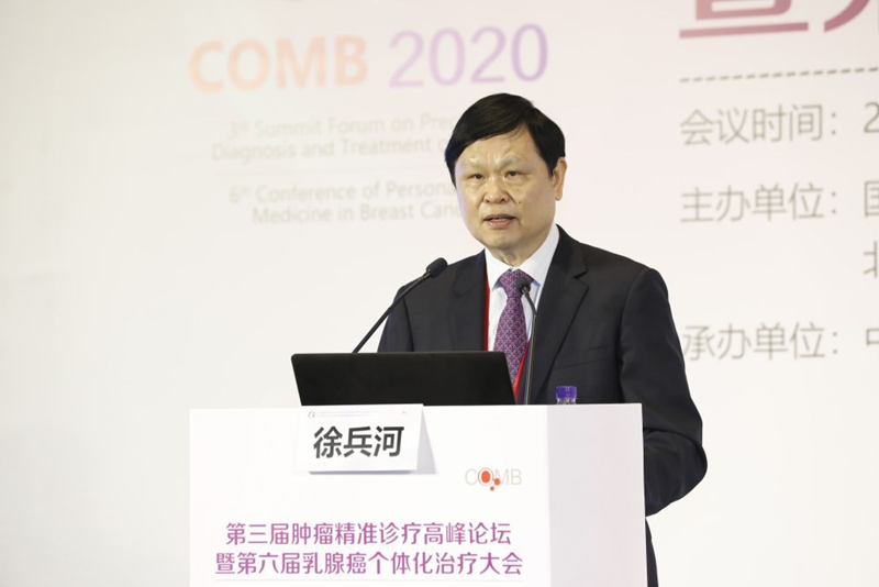 國家腫瘤質(zhì)控中心乳腺癌專家委員會主任委員、中國醫(yī)學科學院腫瘤醫(yī)院徐兵河教授在第六屆乳腺癌個體化治療大會上發(fā)言。圖片由受訪者提供