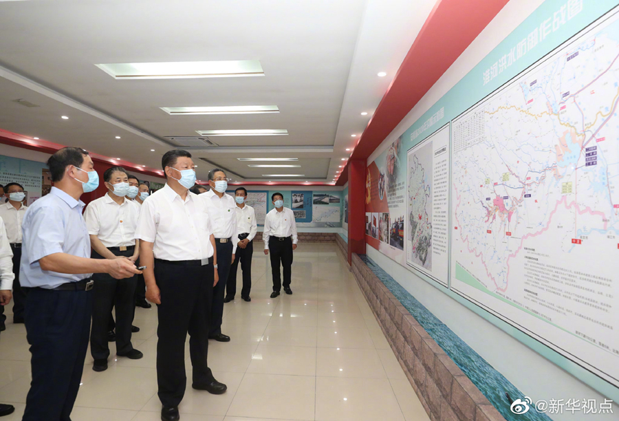 習近平總書記18日赴安徽考察調(diào)研。當天下午,他先后來到阜陽市阜南縣王家壩閘、紅亮箱包有限公司、蒙洼蓄洪區(qū)曹集鎮(zhèn)利民村西田坡莊臺,察看淮河水情,走進田間地頭,了解當?shù)胤姥淳葹暮蜑暮蠡謴蜕a(chǎn)等情況,看望慰問受災群眾。(文字記者:張曉松 攝影記者:鞠鵬 王曄)