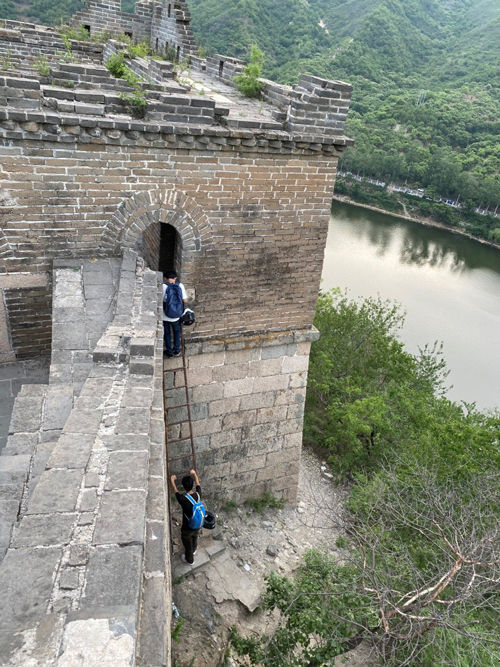 他說,登野長城是不允許的,近年來,北京市文物局也加大了巡查力度,設(shè)置了一些負責長城環(huán)保的公益志愿者和長城保護工作人員巡山。如果被發(fā)現(xiàn),梯子肯定要被鄉(xiāng)鎮(zhèn)沒收。據(jù)稱,登城所用的梯子就被鄉(xiāng)鎮(zhèn)沒收了3次。為保險起見,他會早晨放梯,晚上再撤掉。