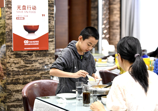 近日,江西省南昌市4萬余家餐館飯店開展“文明就餐,杜絕浪費”主題活動。餐飲行業(yè)通過“光盤族”打折、“半份菜”和“N減1”點菜法等措施,拒絕“舌尖上的浪費”,倡導文明就餐。新華社記者 彭昭之/攝